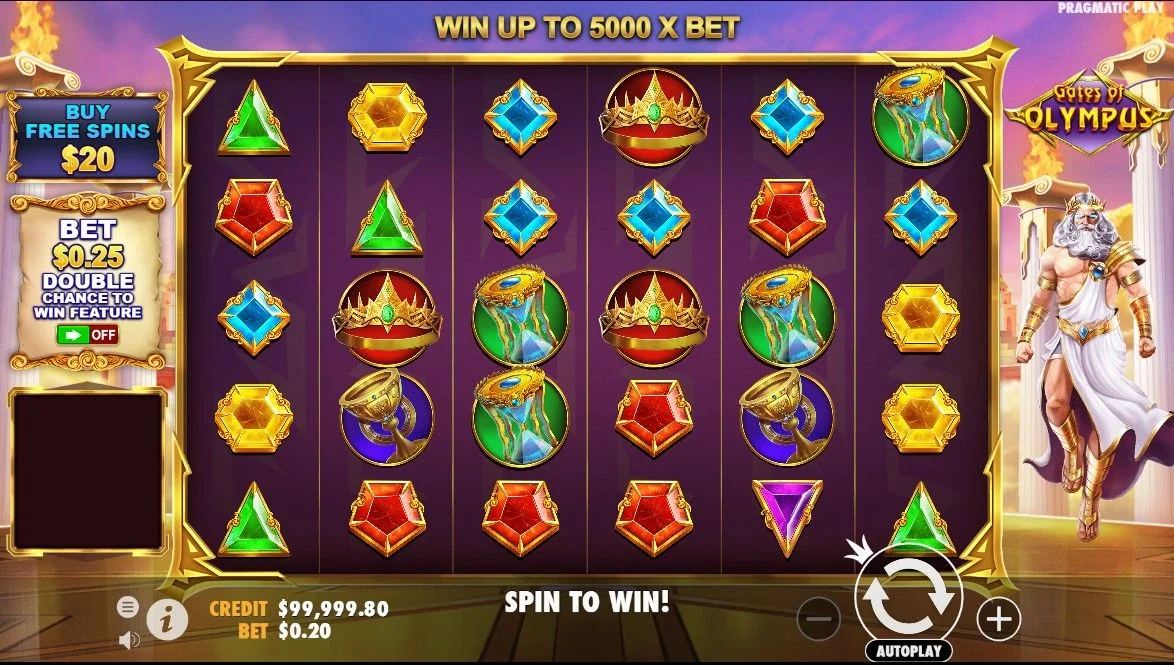 Slot ini menggunakan format grid 6×5 dengan sistem pembayaran scatter-pay, yang berarti kombinasi kemenangan tidak harus berada di payline tertentu. Cukup kumpulkan delapan simbol yang sama di mana saja di grid untuk mendapatkan kemenangan. Fitur ini membuat Gates of Olympus berbeda dari kebanyakan slot tradisional.